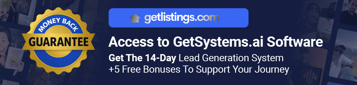 For FREE, you'll get access to GetSystems.ai, a breakthrough system that helps you generate, nurture, and convert real estate leads, regardless of your tech experience.